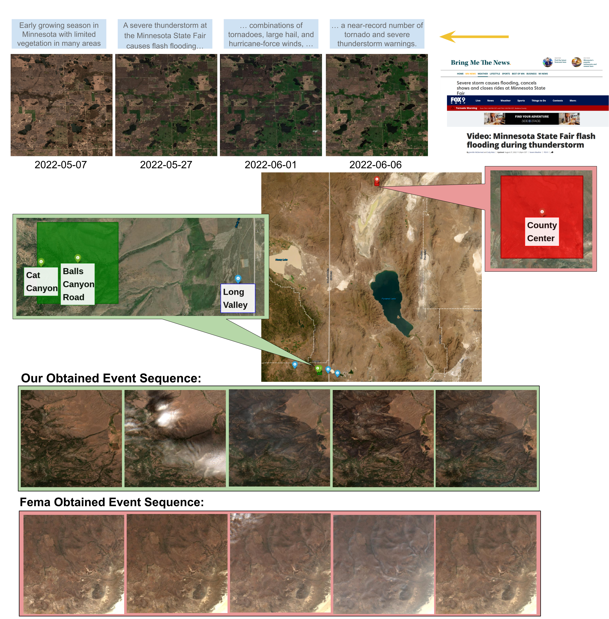 We introduce MONITRS, pairing temporal satellite imagery of ~10,000 natural disasters with natural language descriptions from news articles. Fine-tuned models achieve 88.69% accuracy in disaster classification, outperforming state-of-the-art remote sensing models by over 38%, establishing a new benchmark for automated disaster monitoring.